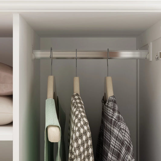 OXYLIFE 2 Door Wardrobe Armoire, White Closet Storage Organizer with Two Drawers, Telescopic Clothing Rod and Shelves for Bedroom