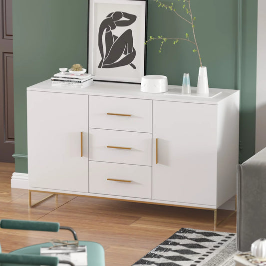 47.2" Wide 3 Drawer Buffet Sideboard, Modern Kitchen Storage Cabinet Console Table White