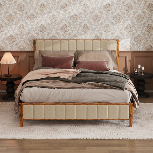 Oxylife Queen Size Bed Frame with Fabric Headboard,Upholstered Wood Platform Bed Frame,12 Slats,Natural, 82.2”L x 63”W x 41.1”H