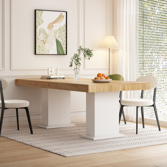 Oxylife Modern Dining Table for 6-8 People, 78.7" Wood Kitchen Table,Long Rectangle Wooden Dinner Table for Dining Room, Brown & White