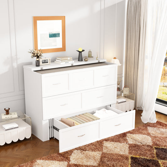 OXYLIFE Murphy Bed, 2 in 1 Convertible Chest Bed Cabinet with Drawer and USB Charging Station for Bedroom, Full Size