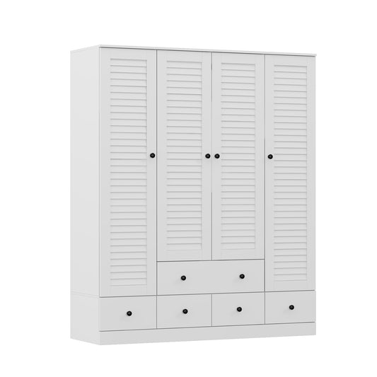Oxylife Wardrobe Armoire Closet with 4 Drawers and Clothing Rod for Bedroom in White