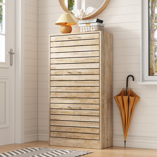 OXYLIFE Shoe Cabinet Entryway, 3 Tier Shoe Storage Organizer Brown