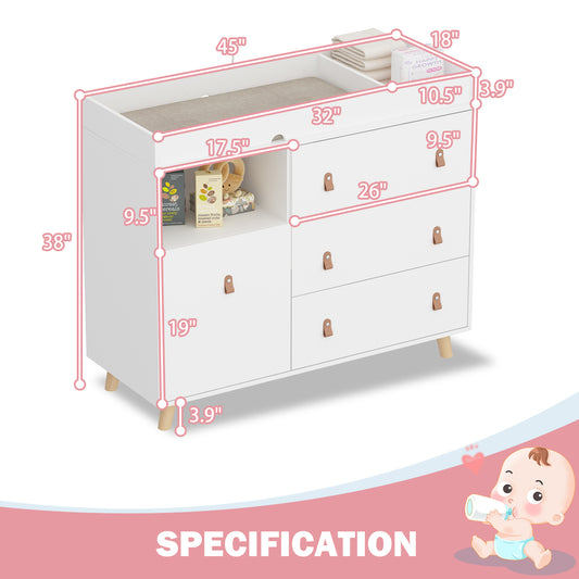 OXYLIFE 45" Baby Nursery Changing Table Dresser with 4 Drawers and Shelf for Nursery Room, White