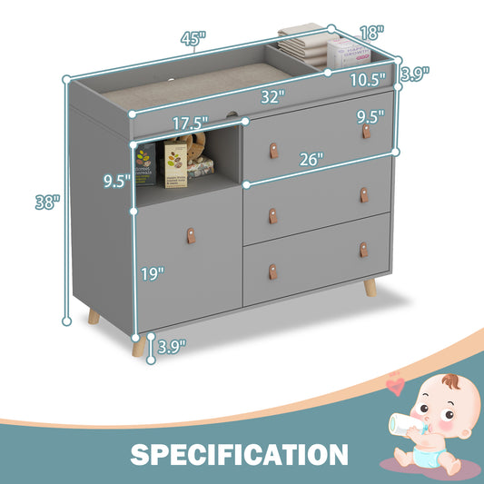 OXYLIFE Baby Nursery Changing Table Dresser with 3 Drawers and Shelf for Nursery Room, Gray