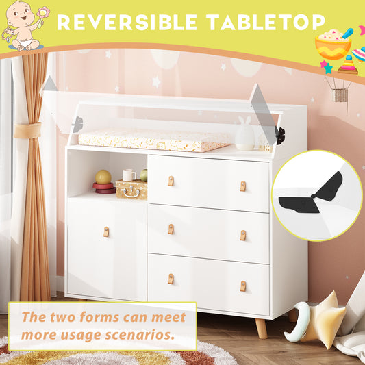 OXYLIFE 2 in 1 Convertible Baby Changing Table Nursery Dresser with 4 Drawers for Nursery Room, White