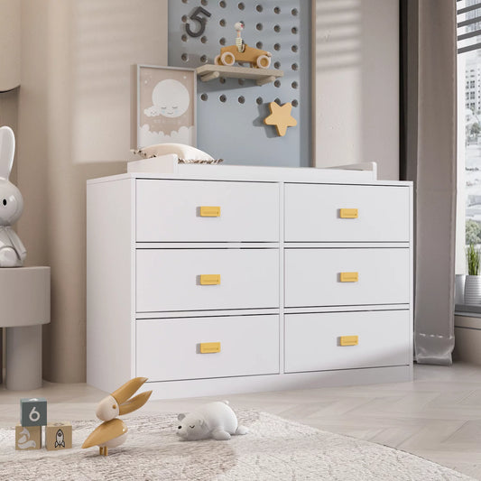 OXYLIFE White Dresser Changing Dresser, 6 Drawers Dresser Baby Nursery Station