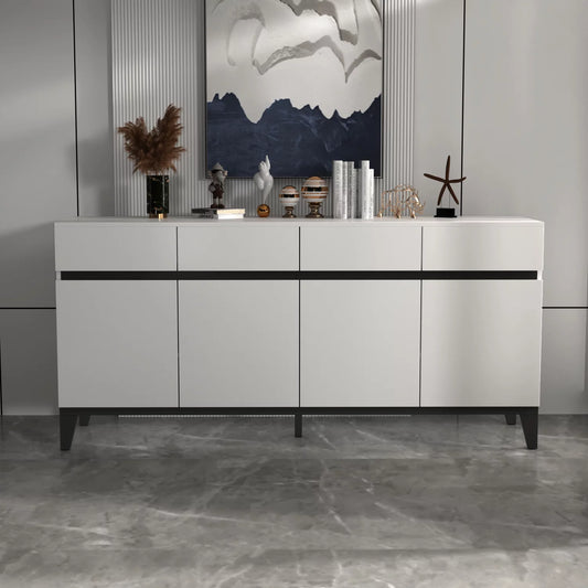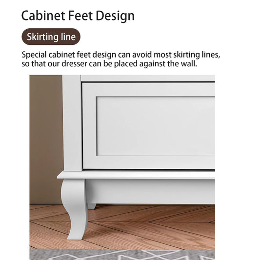 OXYLIFE Sideboard Cabinet with Door and 4 Drawers, Wood Floor Accent Storage Cabinet with Adjustable Shelf for Living Room, White