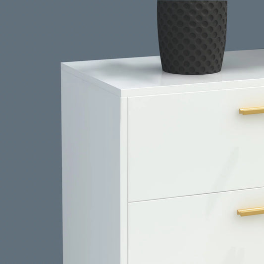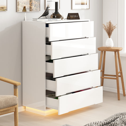 OXYLIFE 5 Drawer Dresser Chest with LED Light for Bedroom and Living Room, White Glossy Finish
