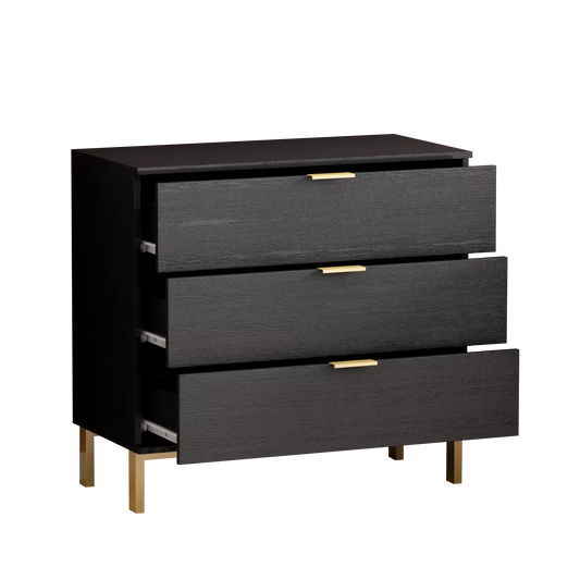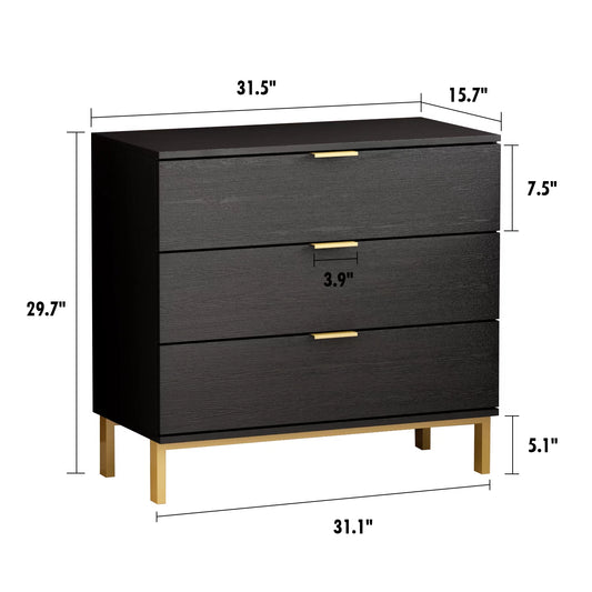 OXYLIFE 3 Drawer Dresser Nightstand with Metal Legs for Bedroom Black