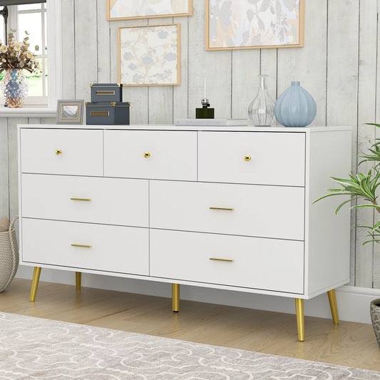 OXYLIFE Mid Century Modern 7-Drawer Double Dresser, Chest of Drawers for Bedroom,White