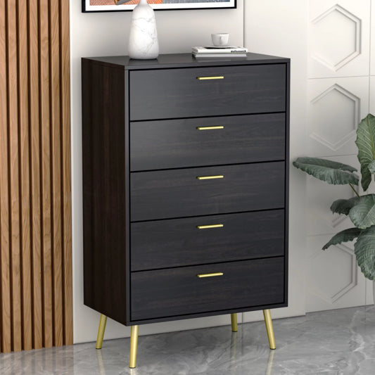 Dresser with 5 Drawers, Modern Wide Chest of Drawers, Tall Storage Chest, Nightstand for Bedroom, Closet, Entryway, Black