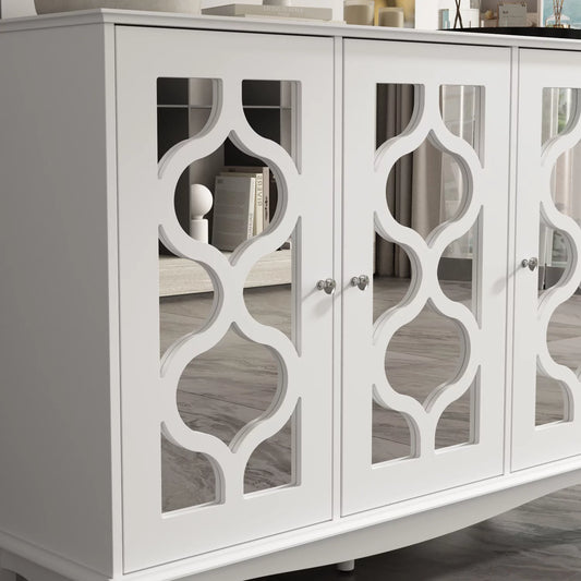OXYLIFE 47.2 in Buffet Cabinet with Mirrored Doors and Adjustable Shelf, 3-Door Console Table Entry Hallway Foyer Table Sideboard, White