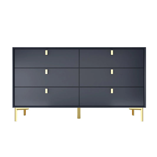 Oxylife Wooden Double Dresser with 6 Drawes, Modern Chest of Drawer for Closet Hallway Bedroom, Navy