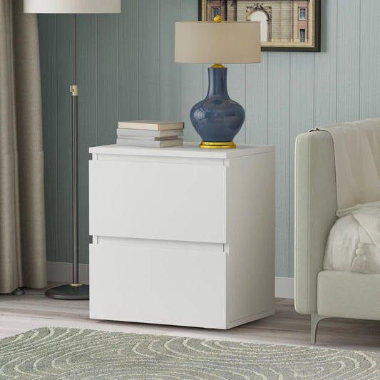 OXYLIFE 2 Drawer Bed Side Table Wooden End Table Nightstand White