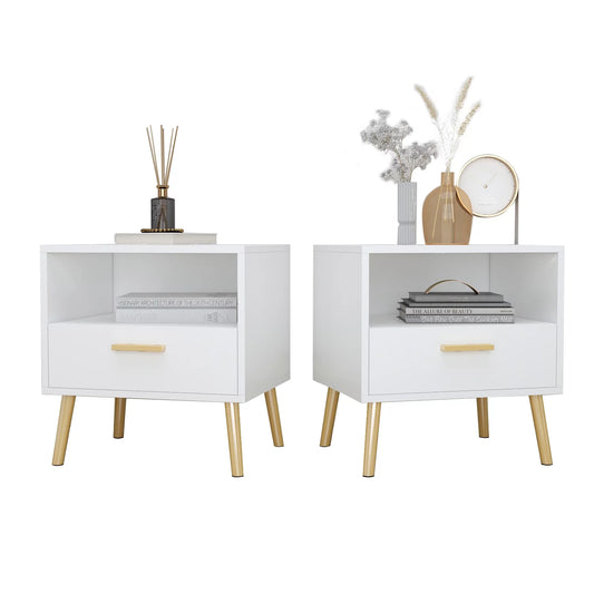 OXYLIFE Set of 2 Nightstand Bedside Table for Bedroom White