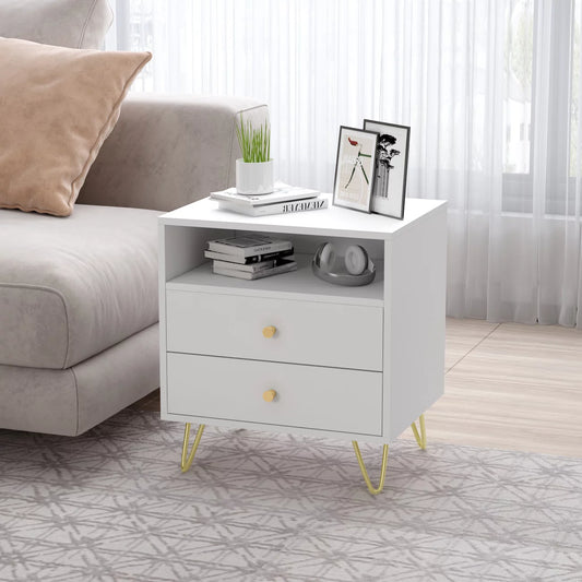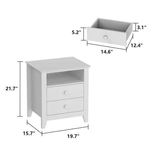 Oxylife Bedside Table Nightstand with 2 Drawers and Opened Shelf for Bedroom Living Room White