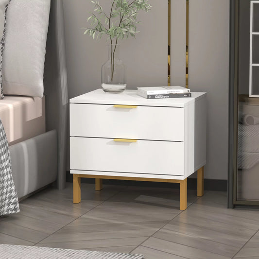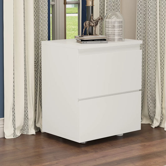 OXYLIFE Nightstand with 2 Drawers, White End Side Table for Living Room Bedroom
