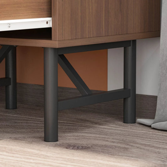 Mid Century Night Stand with 2 Drawers Storage Drawer, Wooden End Table with Metal Legs, Bedside Table for Bedroom Living Room, Brown