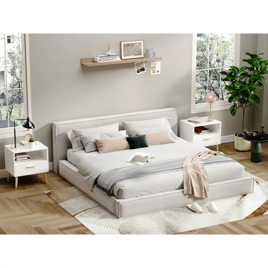 Mid-Century Nightstand with 3 Drawers,Chests of Drawers Bed Side Table for Bedroom in White