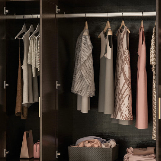 OXYLIFE Wardrobe Armorie with Shutter Door, Closet Storage Cabinet and 5 Drawers and Hanging Rod for Bedroom, Walnut