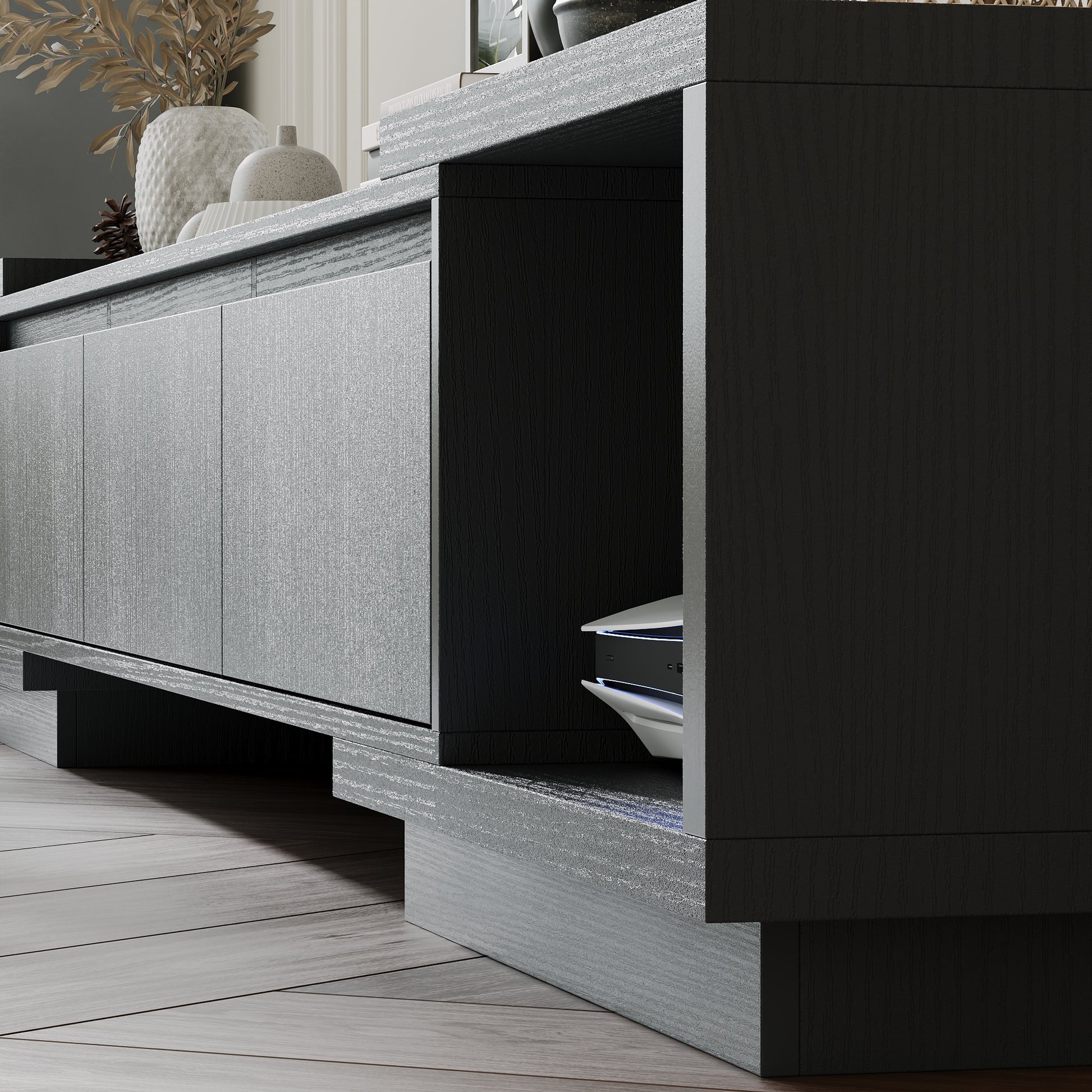 - A balance between modern aesthetic and storage function