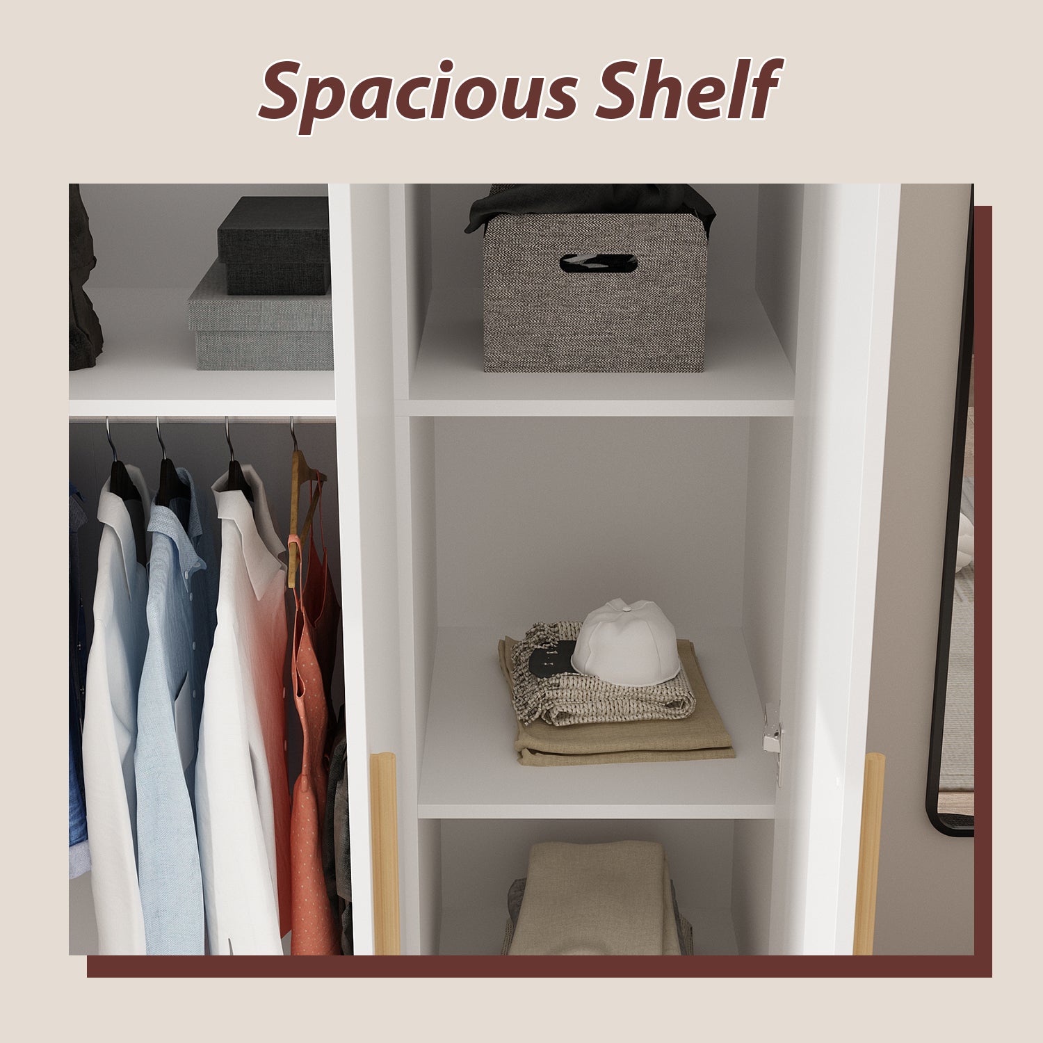 - Features three storage shelves ideal for organizing a broad range of foldable clothes, bags, toys, and more.