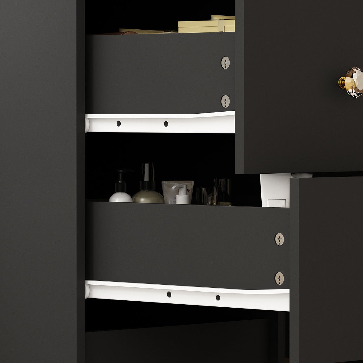 OXYLIFE Makeup Vanity Table Set Organizer Dressing Desk, Light Mirror, 9 Drawers, Storage Shelves, Black