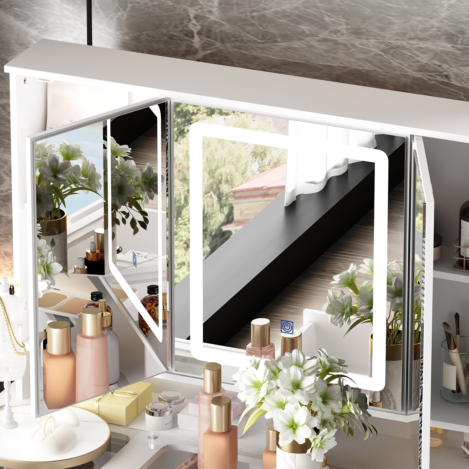 - The tiered storage behind the mirror ensures easy access to your makeup, perfumes, and accessories.